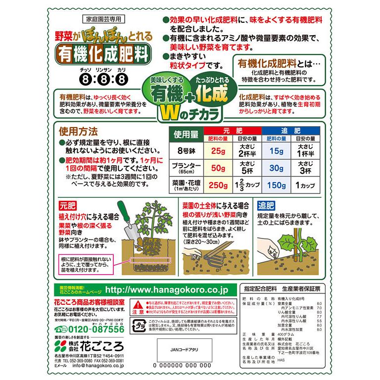 元肥 追肥 野菜がポンポンとれる有機化成肥料 400g 8 8 8 土 肥料 薬剤 忌避剤 園芸ネット 本店 通販 Engei Net